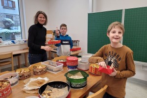 Schon am Donnerstag, den 15. Dezember wurden die Kekse mit der Hilfe von Eltern, Lehrerinnen und etlichen Kindern in Päckchen einsortiert, die die Volksschulkinder gefaltet hatten.