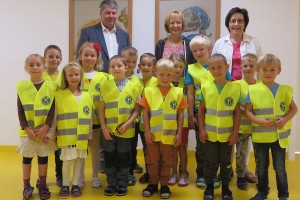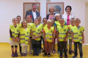 Zusätzlich brachten uns Bgm. Leopold Bock und Vzbgm. Cornelia Juster Buntstifte und Folder von der Schutzengelaktion des Landes NÖ. Damit sollen die Kinder zur Achtsamkeit im Straßenverkehr sensibilisiert werden. Danke!