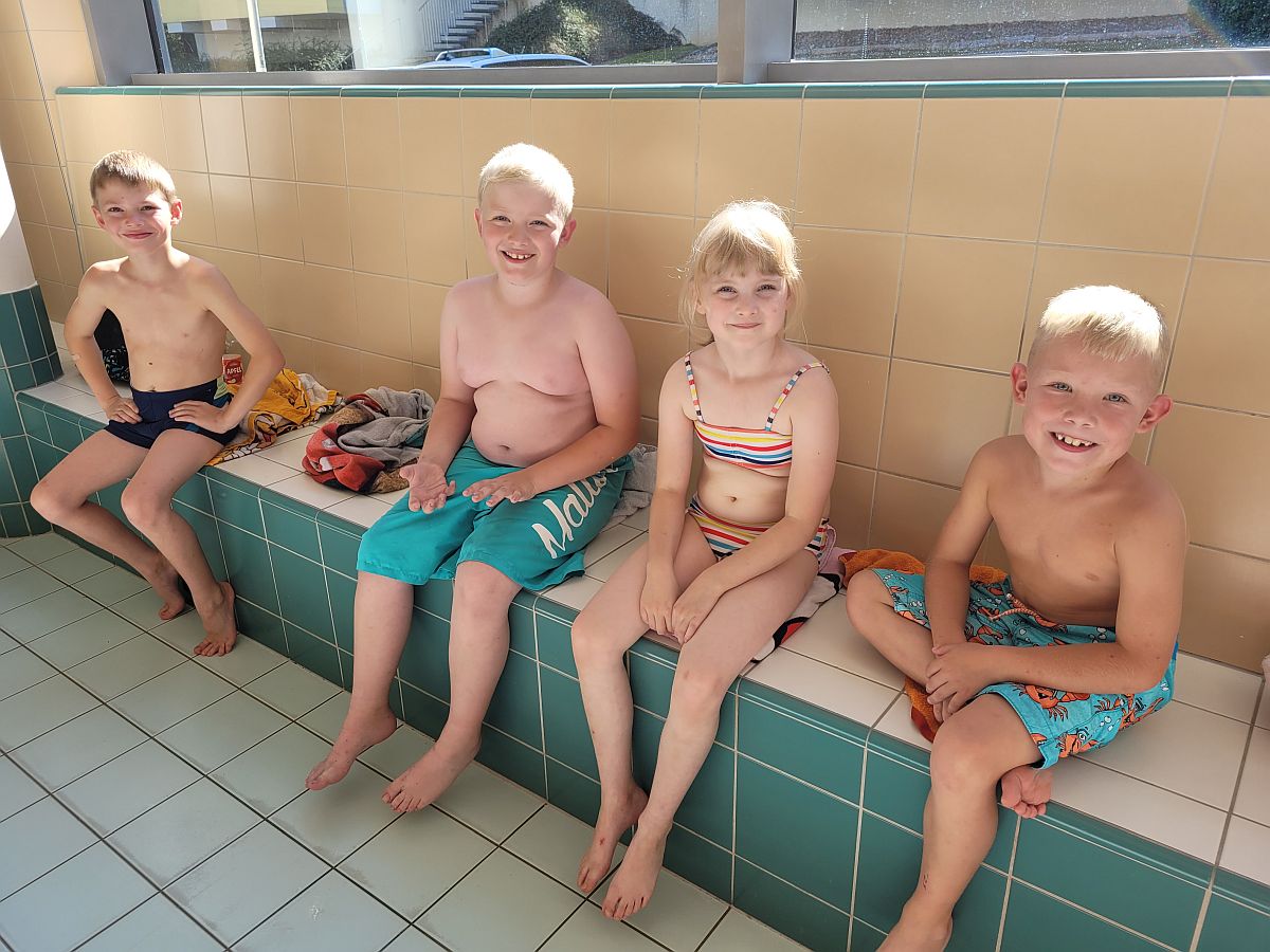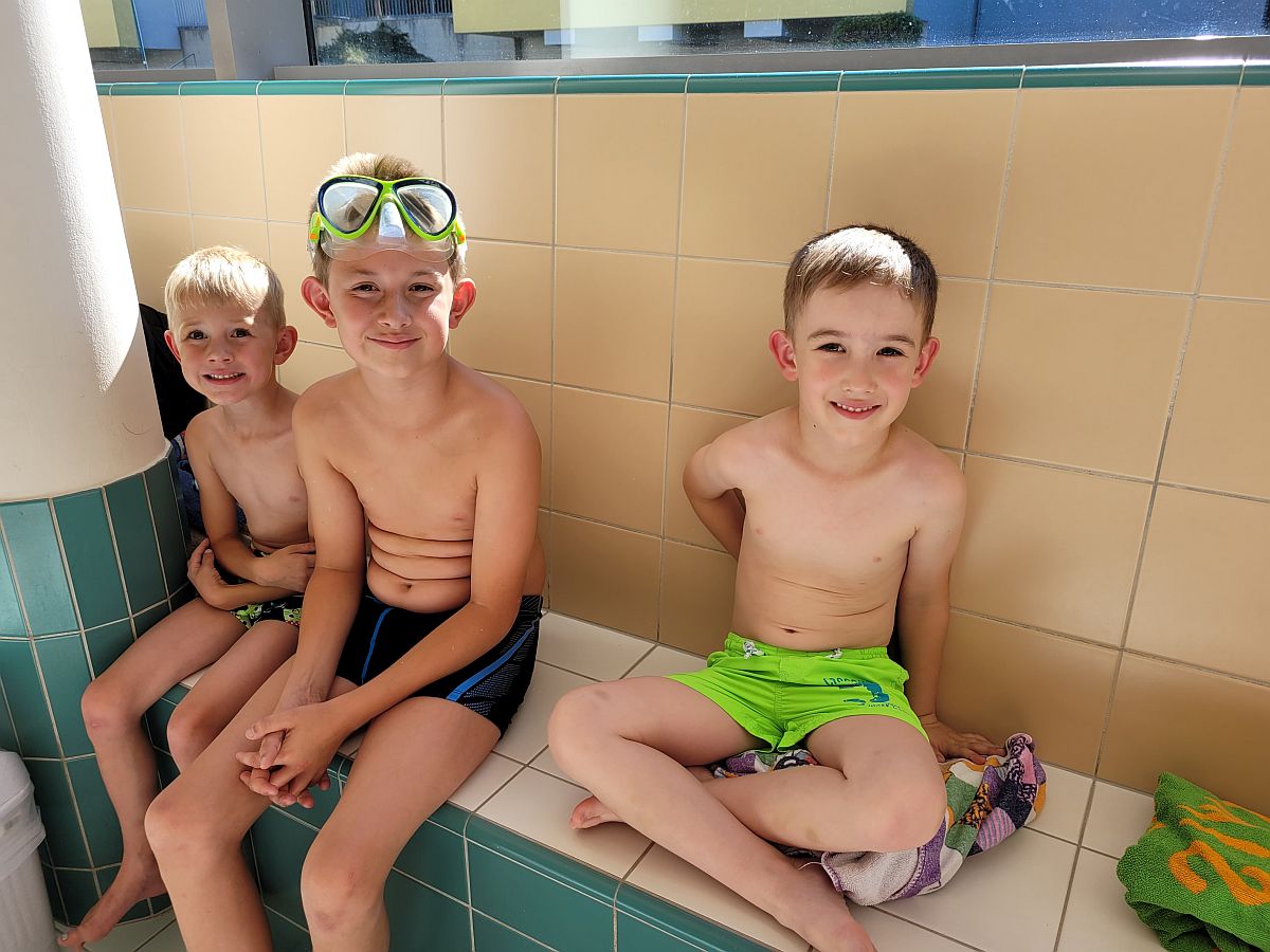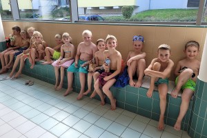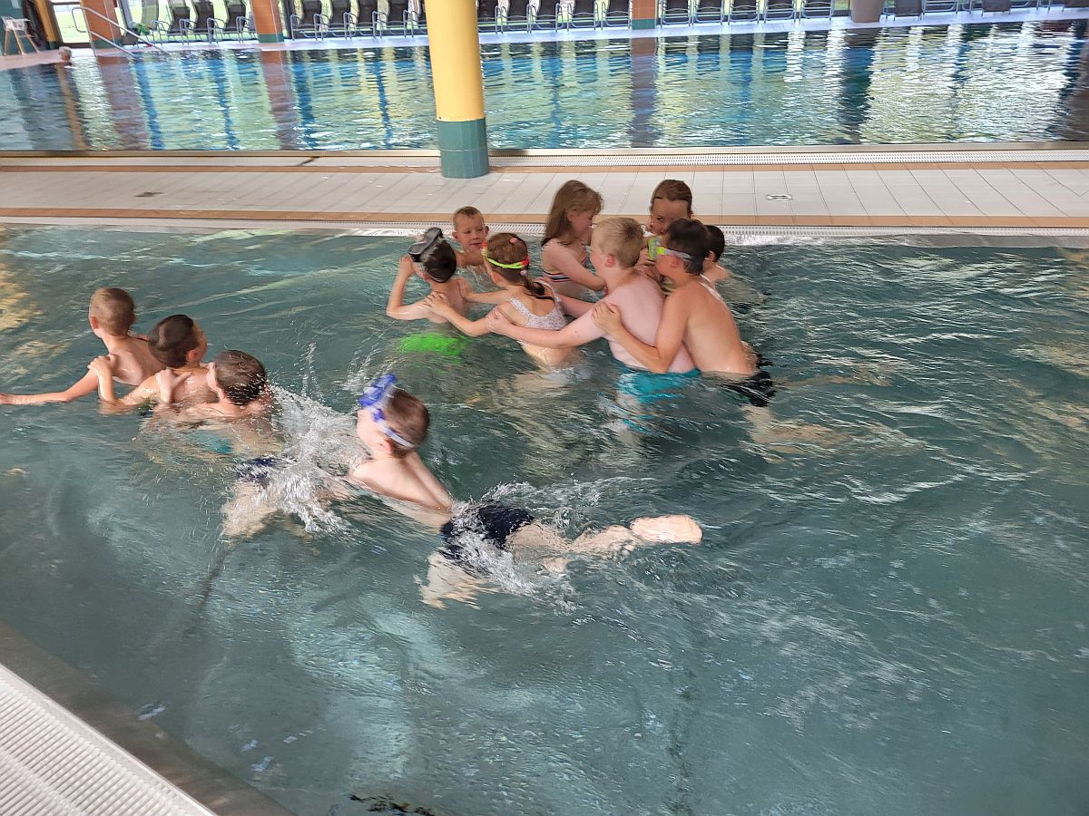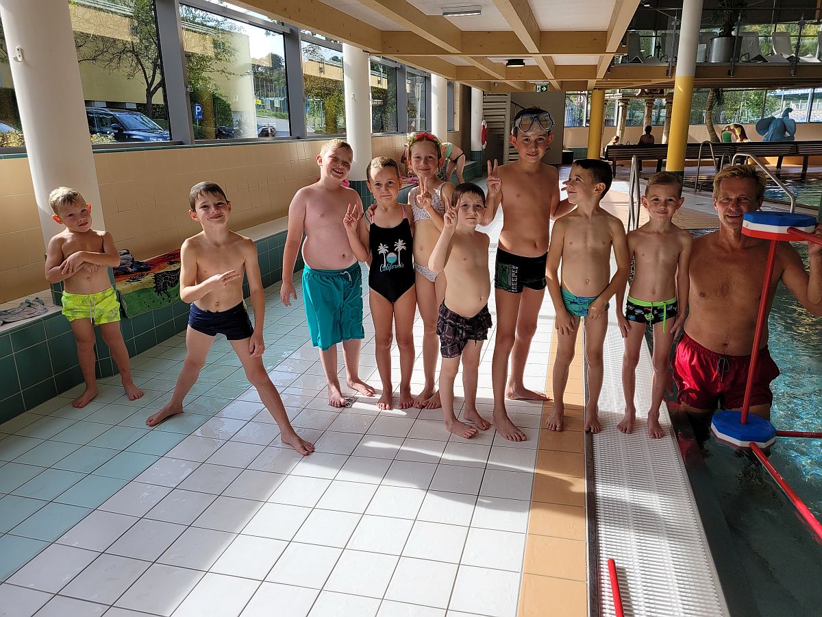 Unter der Leitung von SR Gerhard Schnabl aus der MS Ottenschlag und Sonja Hackl gibt es Wassergewöhnungsübungen, Spiele, Sprungtraining und Schwimmübungen. Auch die Rutsche wird fleißig frequentiert.