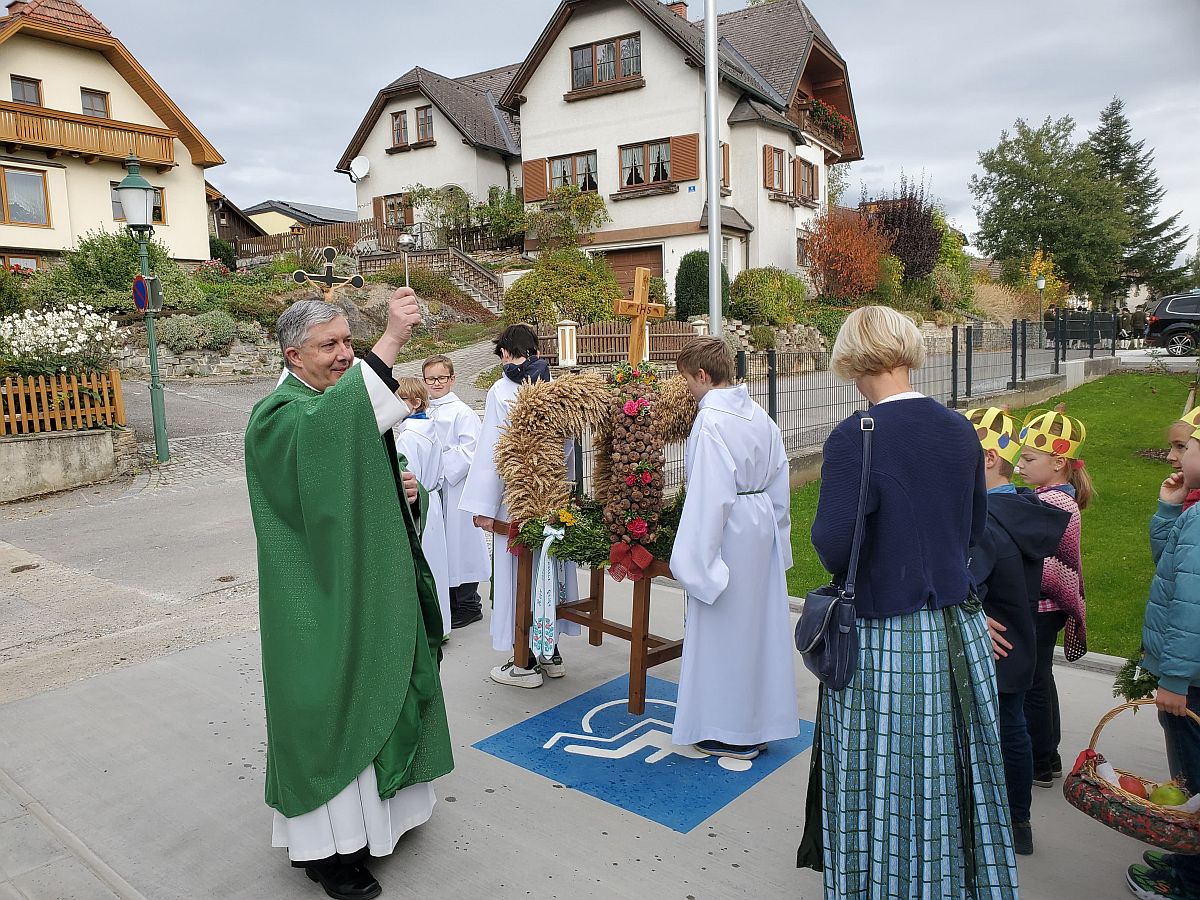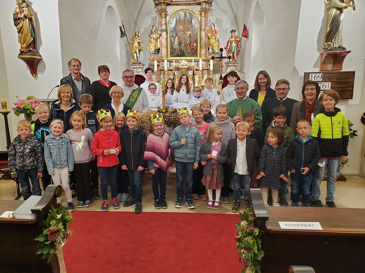 Der Erntedankgottesdienst wurde vom Chor „Drunter und Drüber“ und vom Schulchor der VS gestaltet. VOL Sonja Hackl studierte wieder mit den Kindern frohe und schwungvolle Lieder ein.