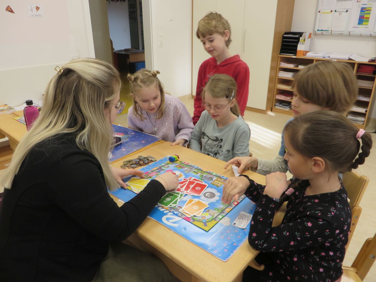 Freudig spielten die Kinder beim anschließenden Quiz und beim Spiel „Mein Taschengeld“ mit. Die Gewinner erhielten nette Preise.