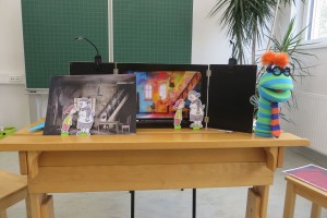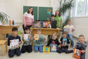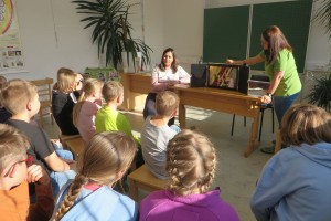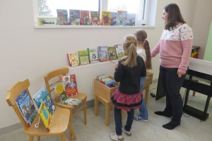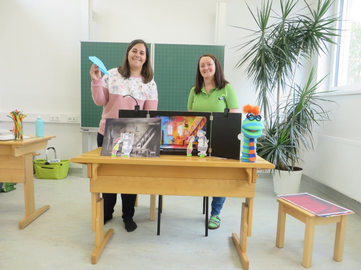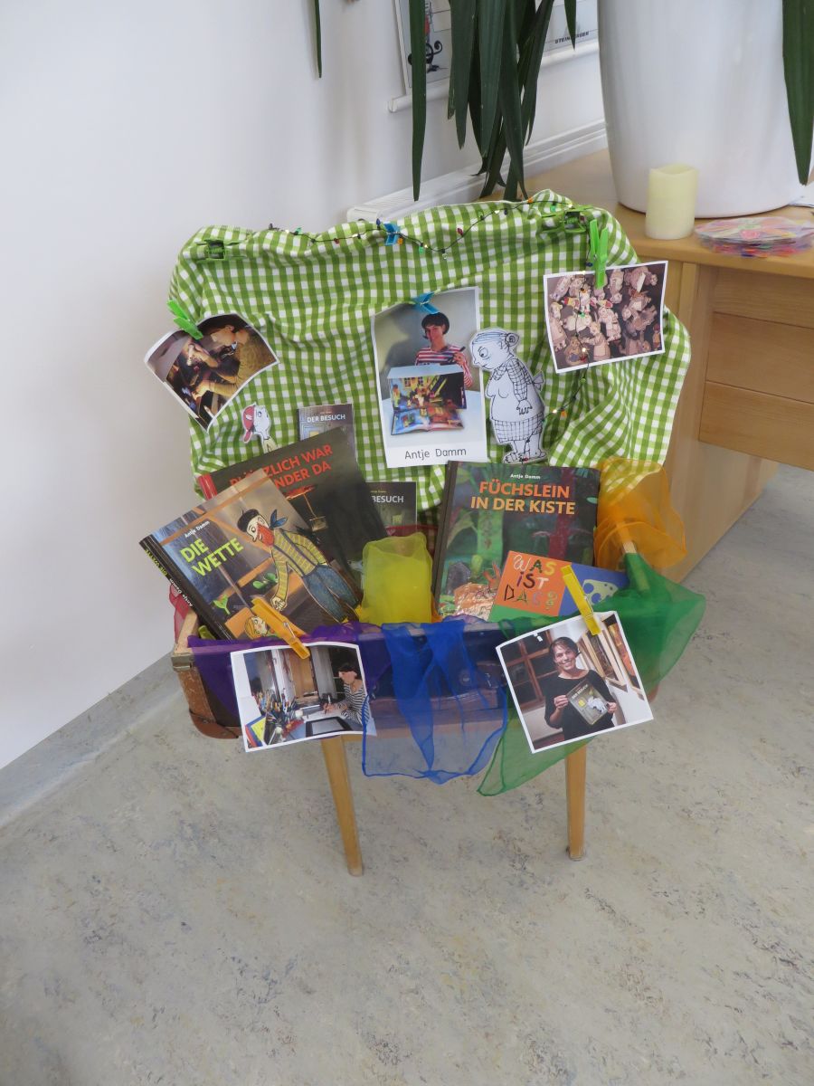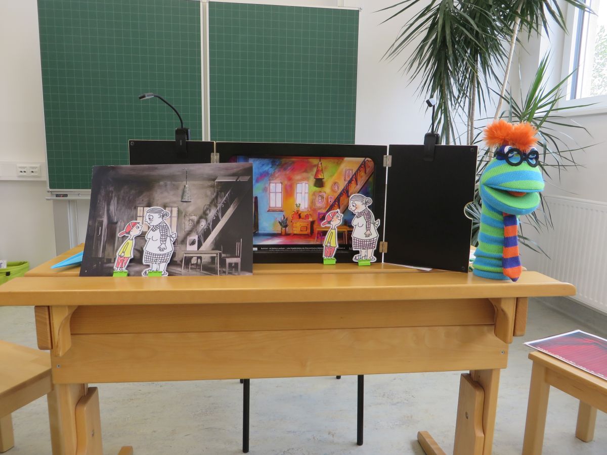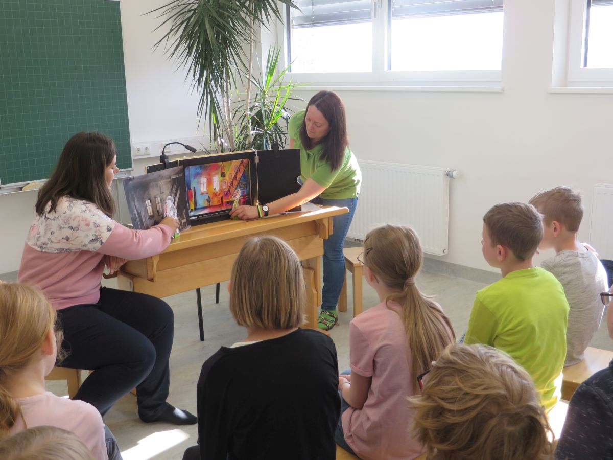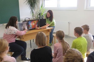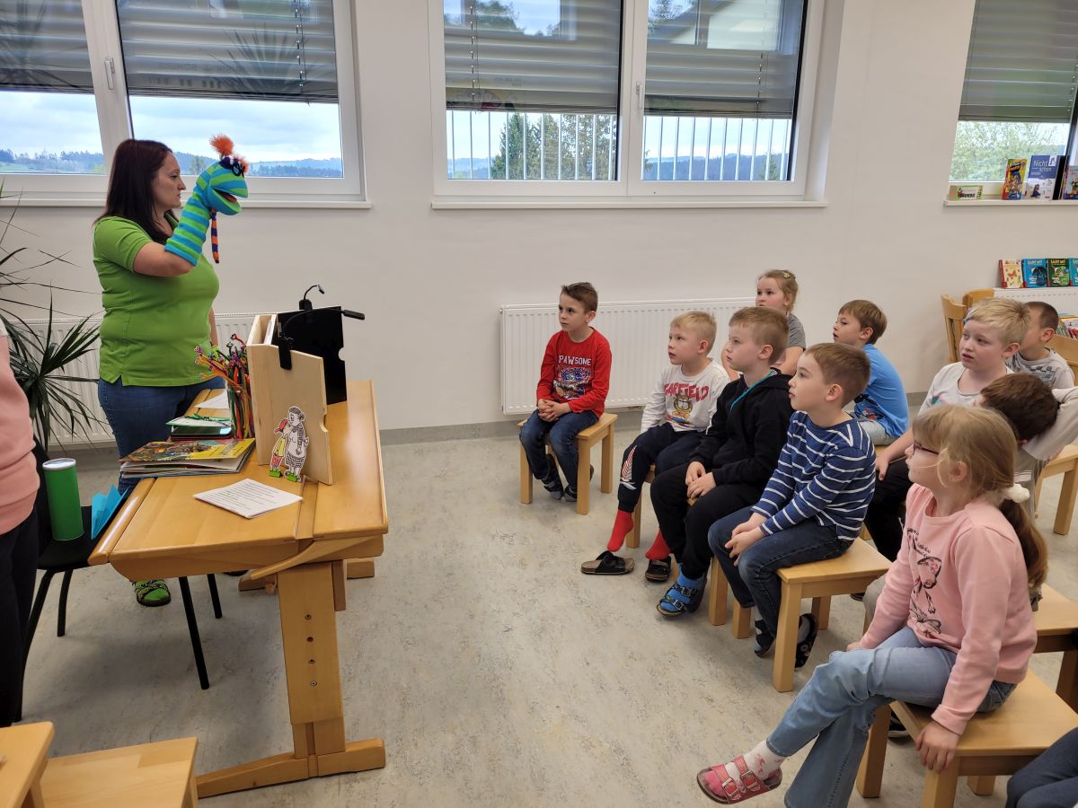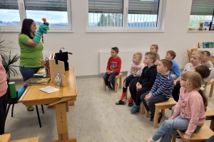 Er erzählte den Kindern Geschichten rund um die Bücherei von Sallingberg. Anschließend lasen die Büchereidamen den Kindern ein Buch vor und zeigten dabei die Bilder am Kamishibai.