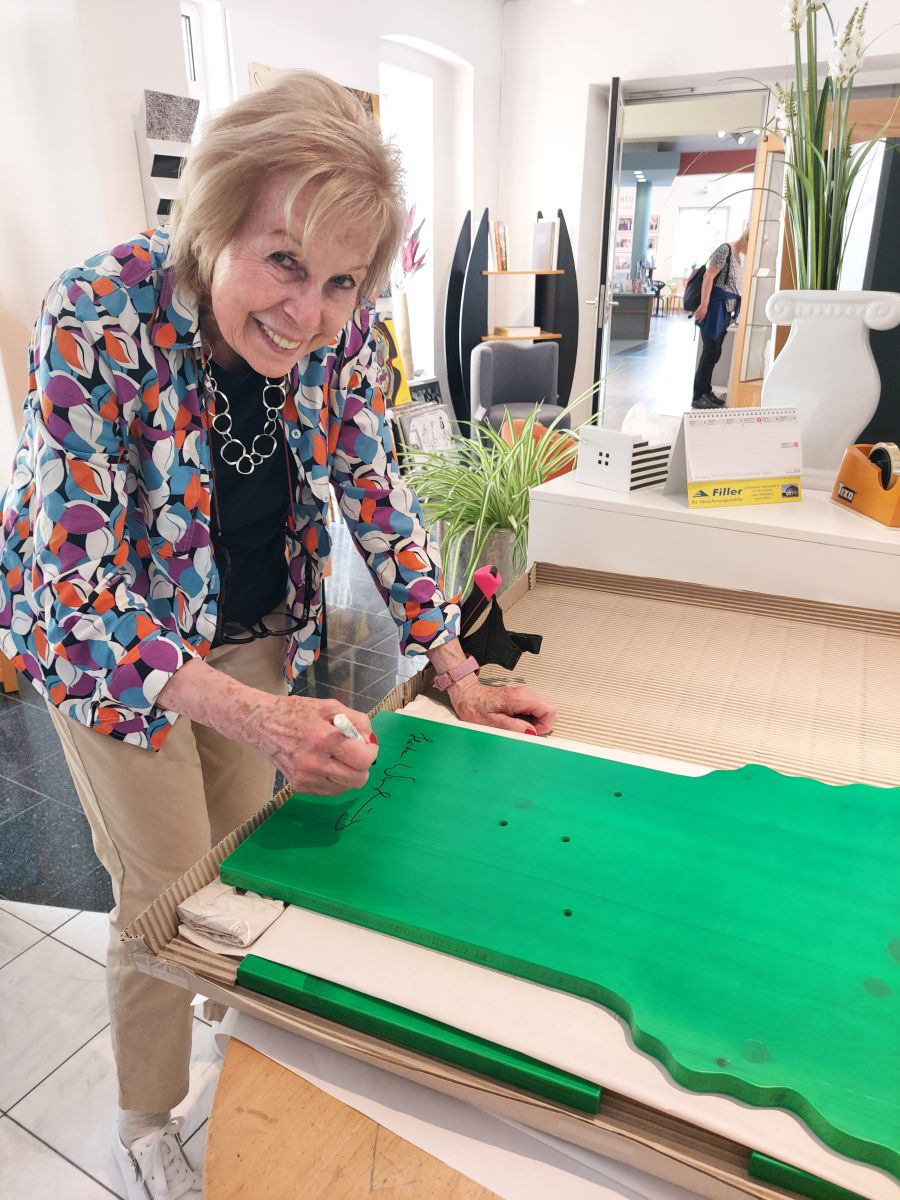 Wir freuen uns, dass Frau Prof. Warlamis auch einen Kindersessel signiert hat. Danke!