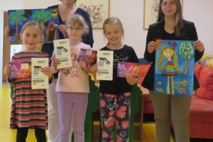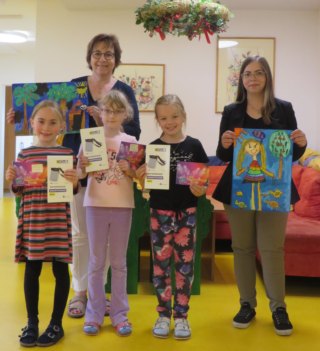 Karin Kolm von der Raiba Ottenschlag überreichte ihnen Kinogutscheine und ein Smartphonetäschchen.