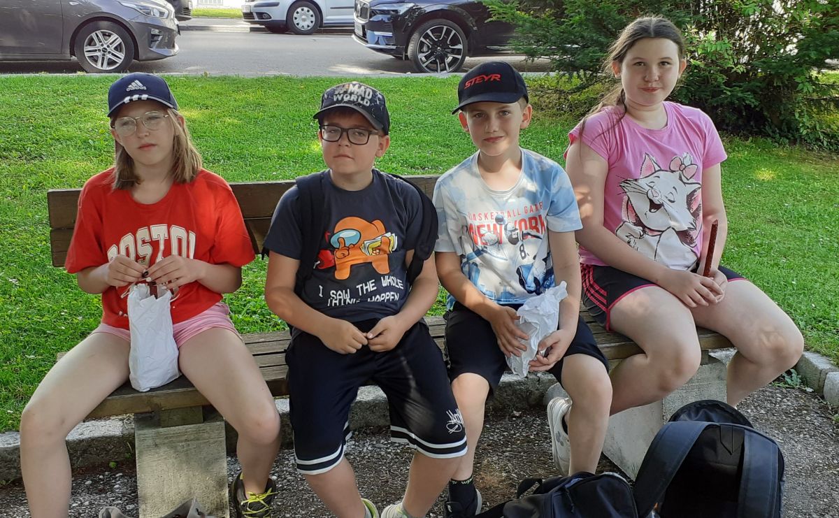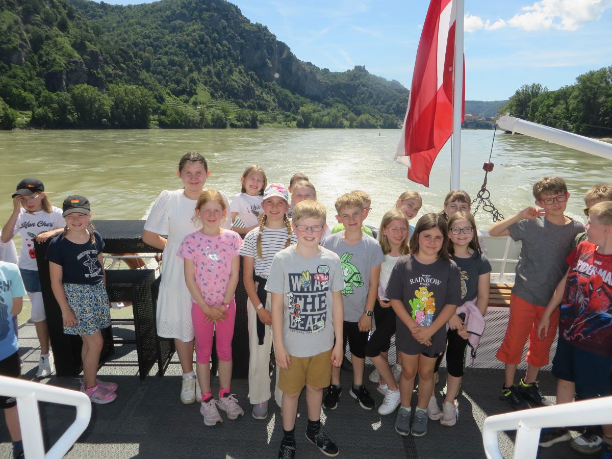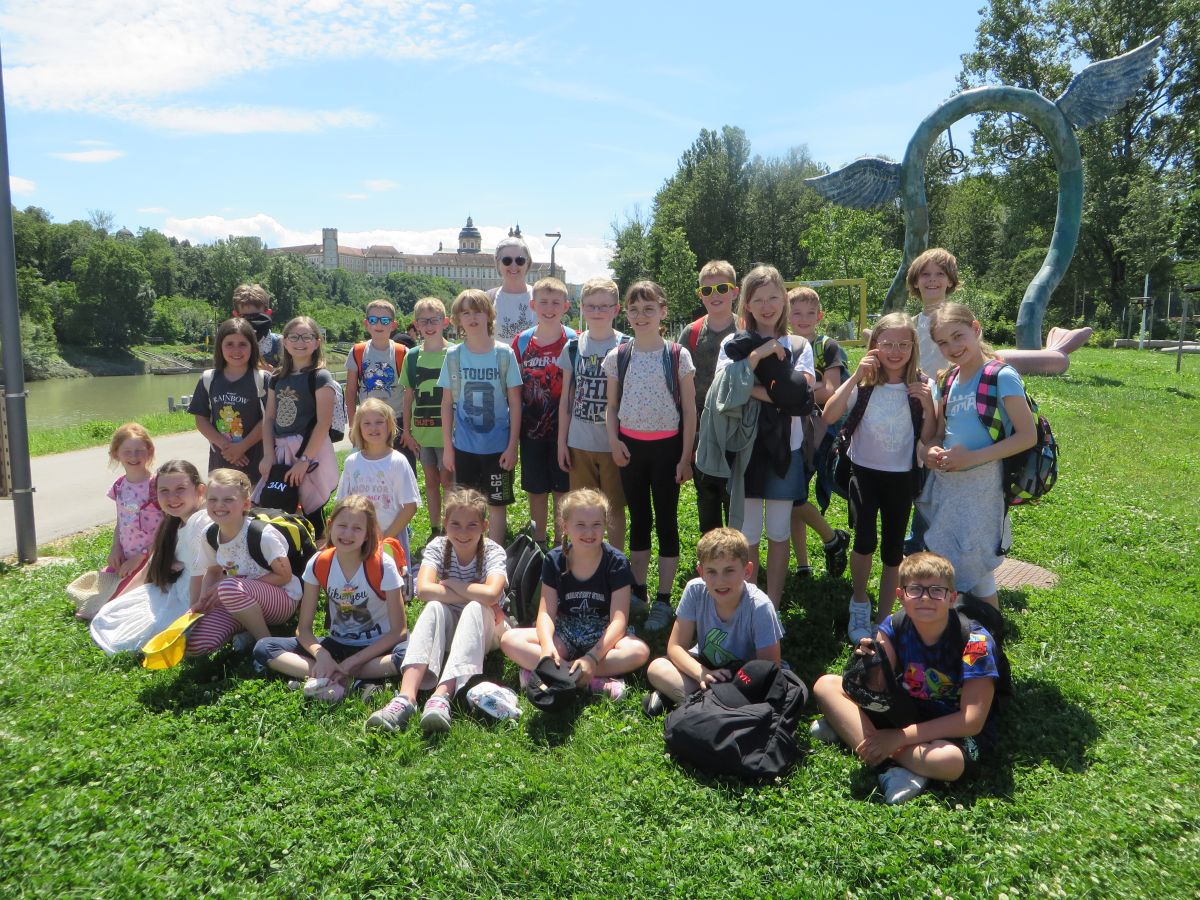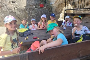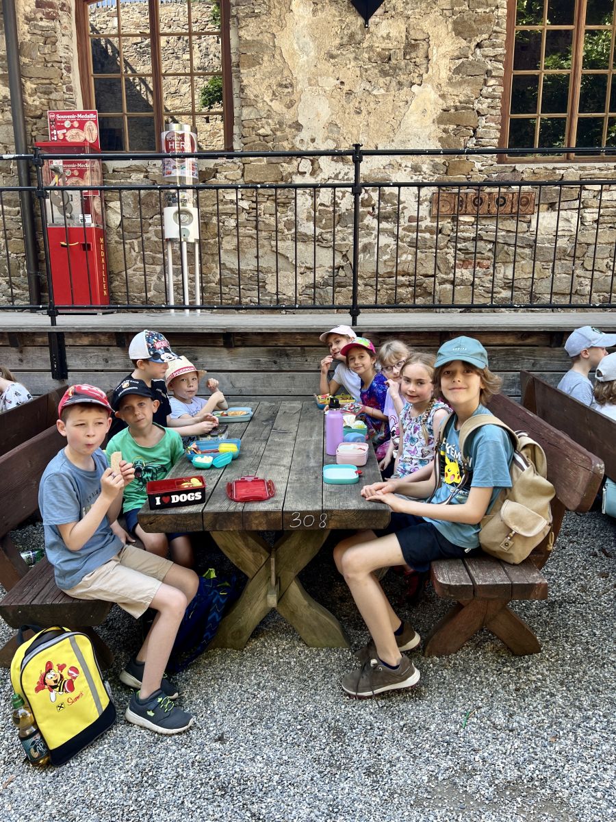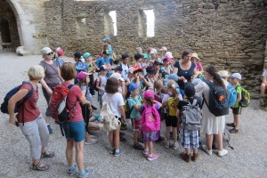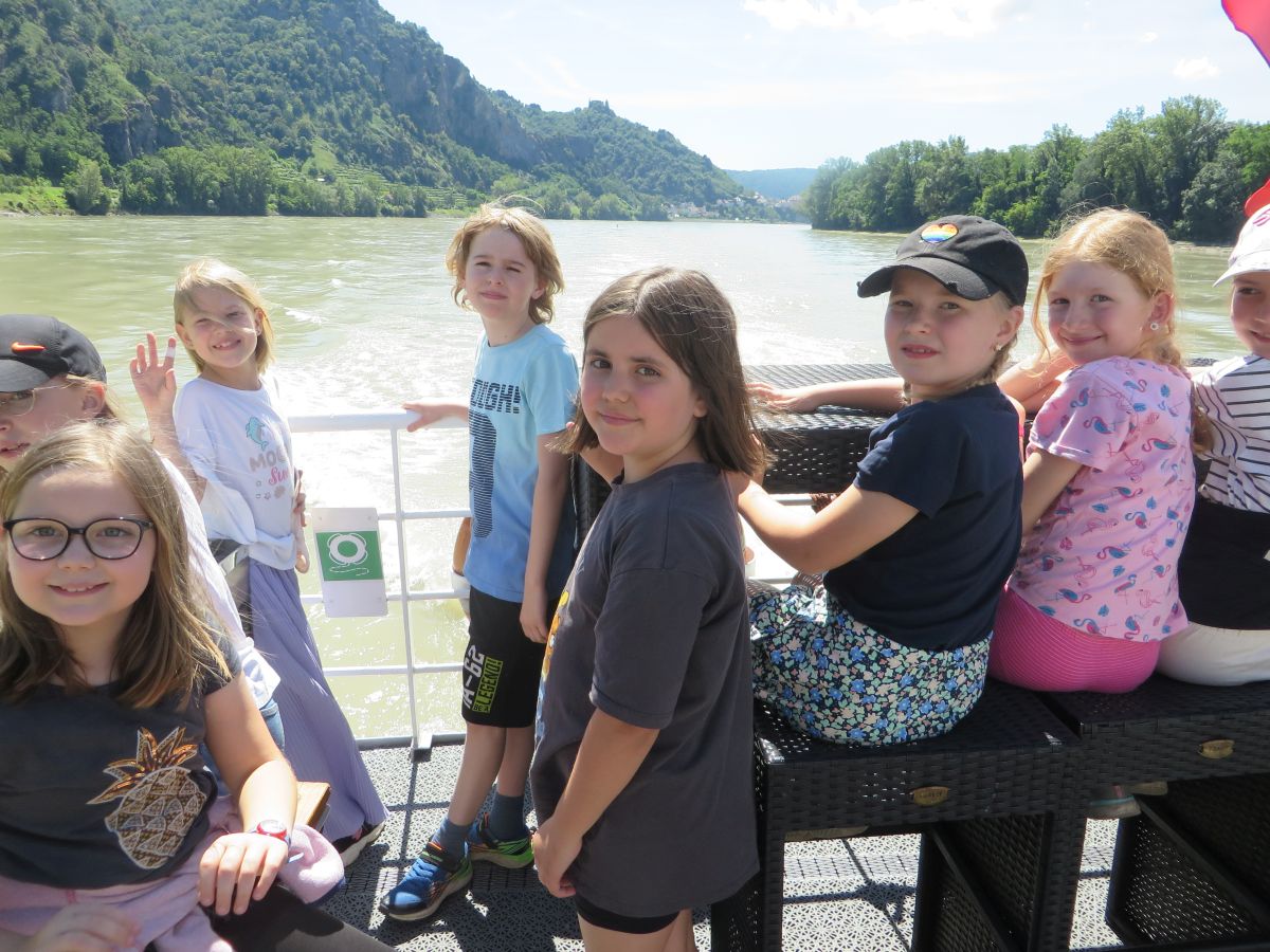 Nach dem abwechslungsreichen Frühstück und dem Einpacken holten uns am Mittwoch der Bus mit den Kindern der 1. und 2. Schulstufe und ihrer Lehrerin Sonja Hackl ab. Wir stiegen zu und fuhren zur Burgruine Aggstein. Dort unterhielt uns Märchenerzählerin Dena Seidl mit ihren wunderbaren Geschichten. Zum Abschluss ging es noch auf Schnitzeljagd und dann nach Hause.