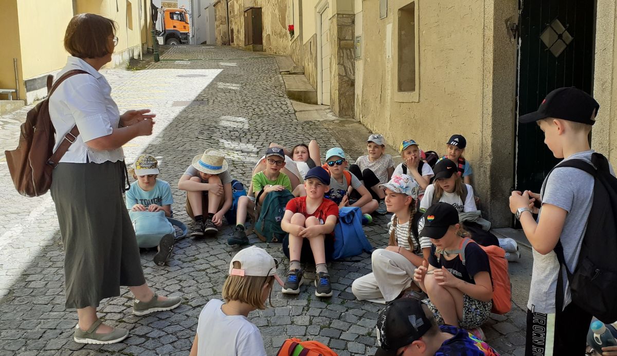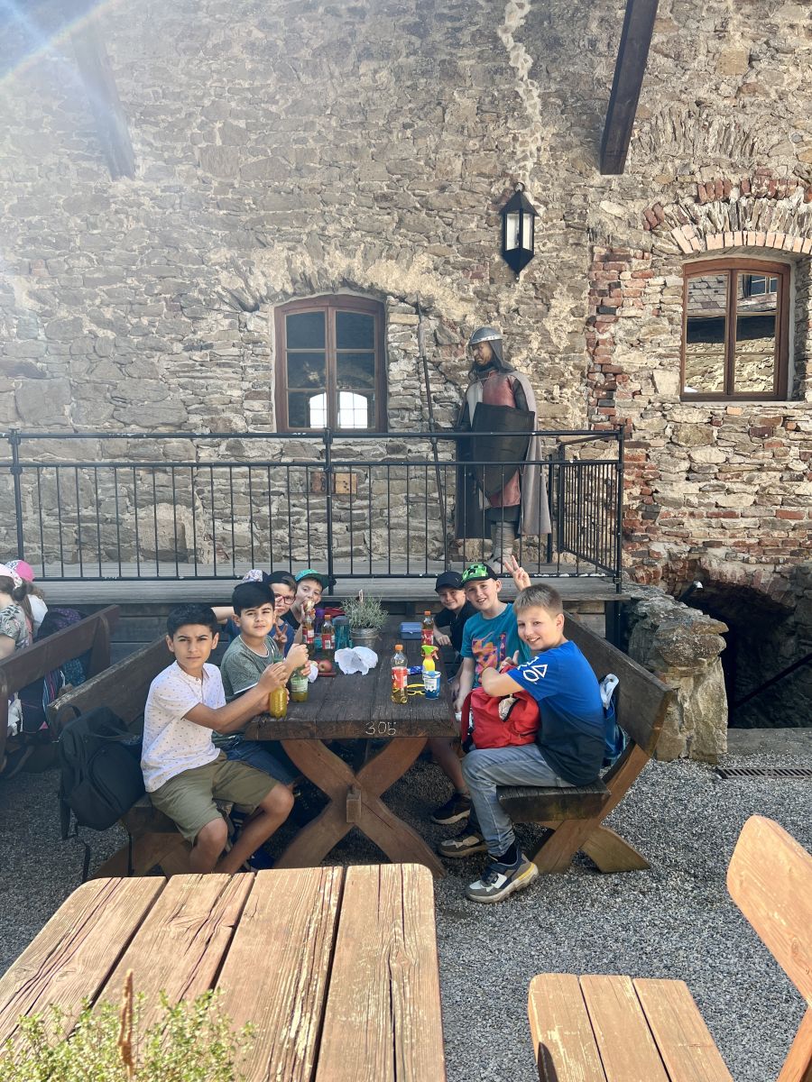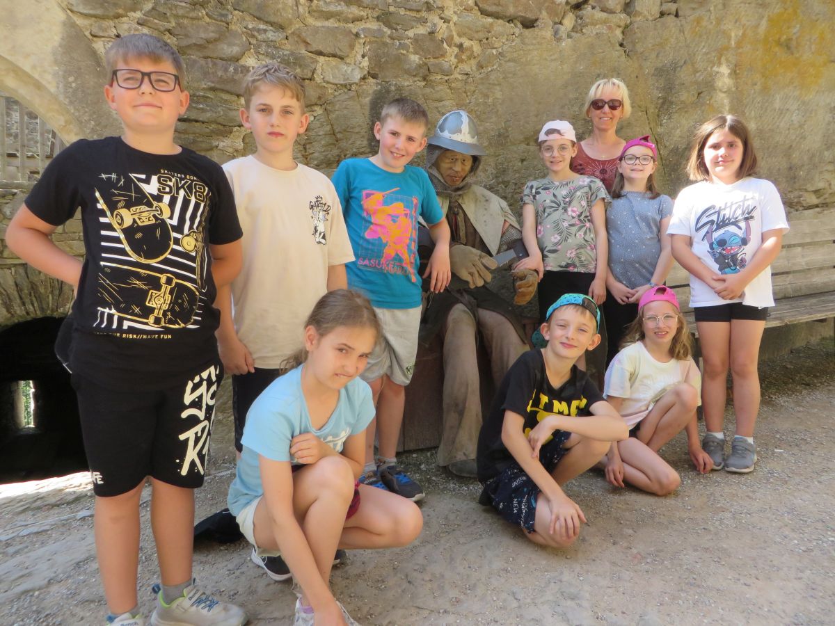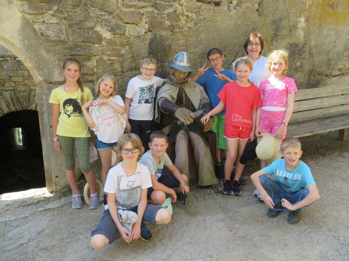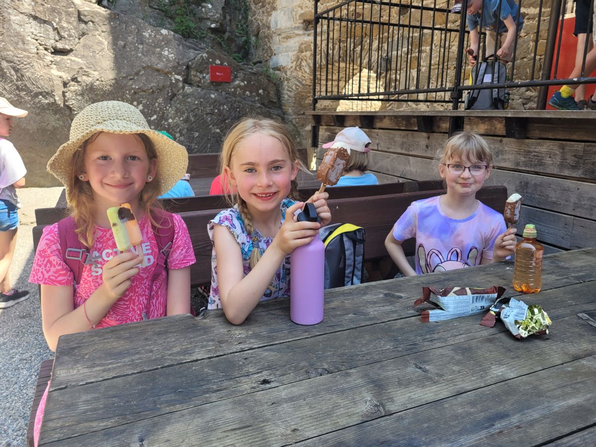 Nach dem abwechslungsreichen Frühstück und dem Einpacken holten uns am Mittwoch der Bus mit den Kindern der 1. und 2. Schulstufe und ihrer Lehrerin Sonja Hackl ab. Wir stiegen zu und fuhren zur Burgruine Aggstein. Dort unterhielt uns Märchenerzählerin Dena Seidl mit ihren wunderbaren Geschichten. Zum Abschluss ging es noch auf Schnitzeljagd und dann nach Hause.