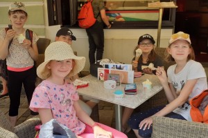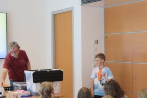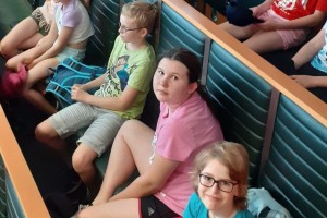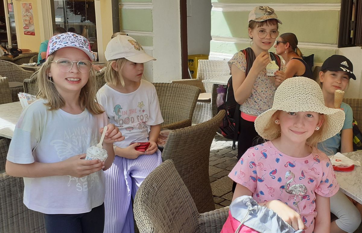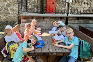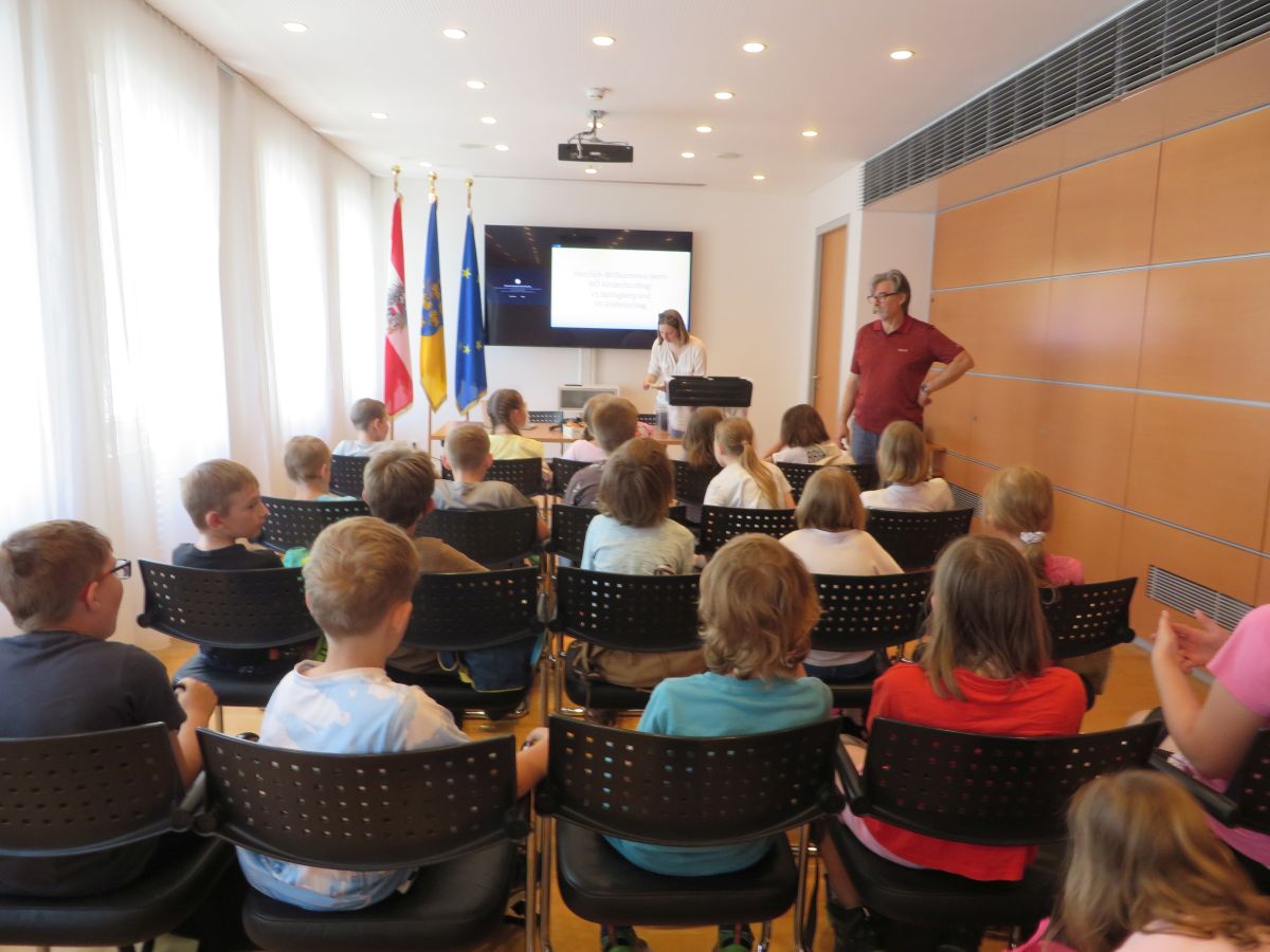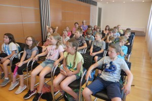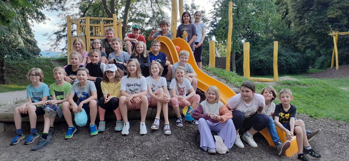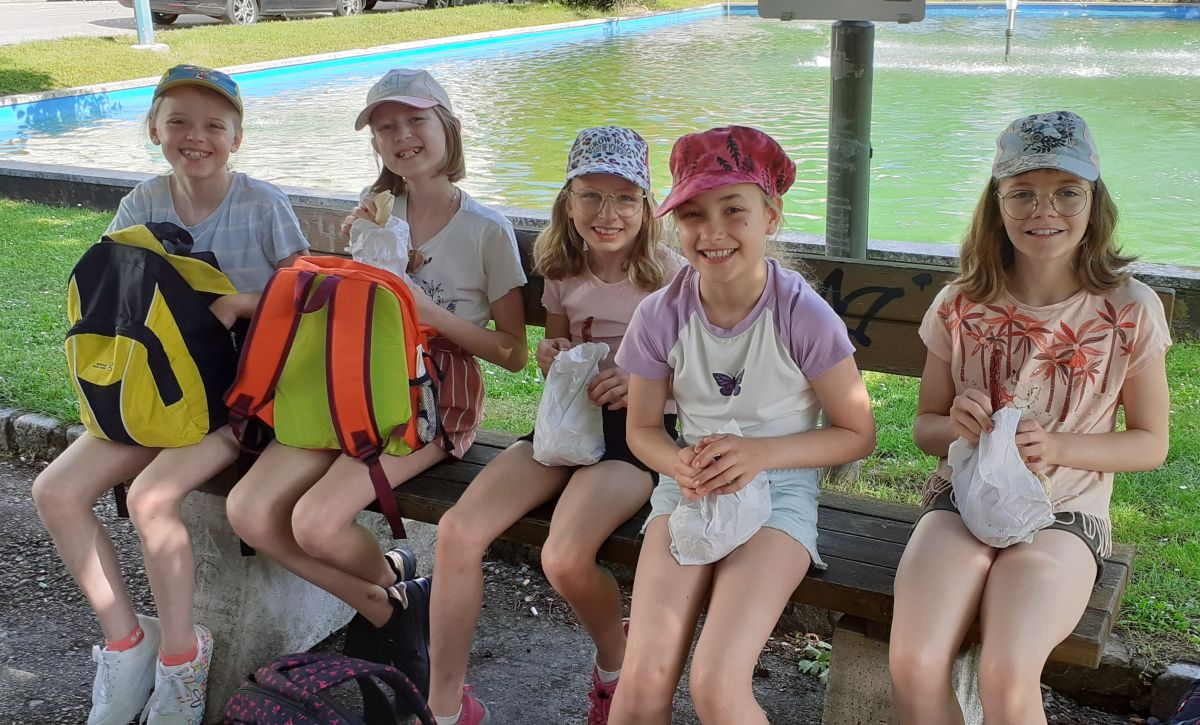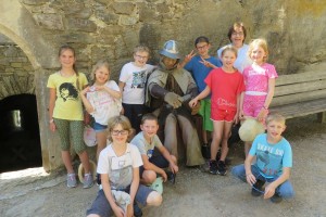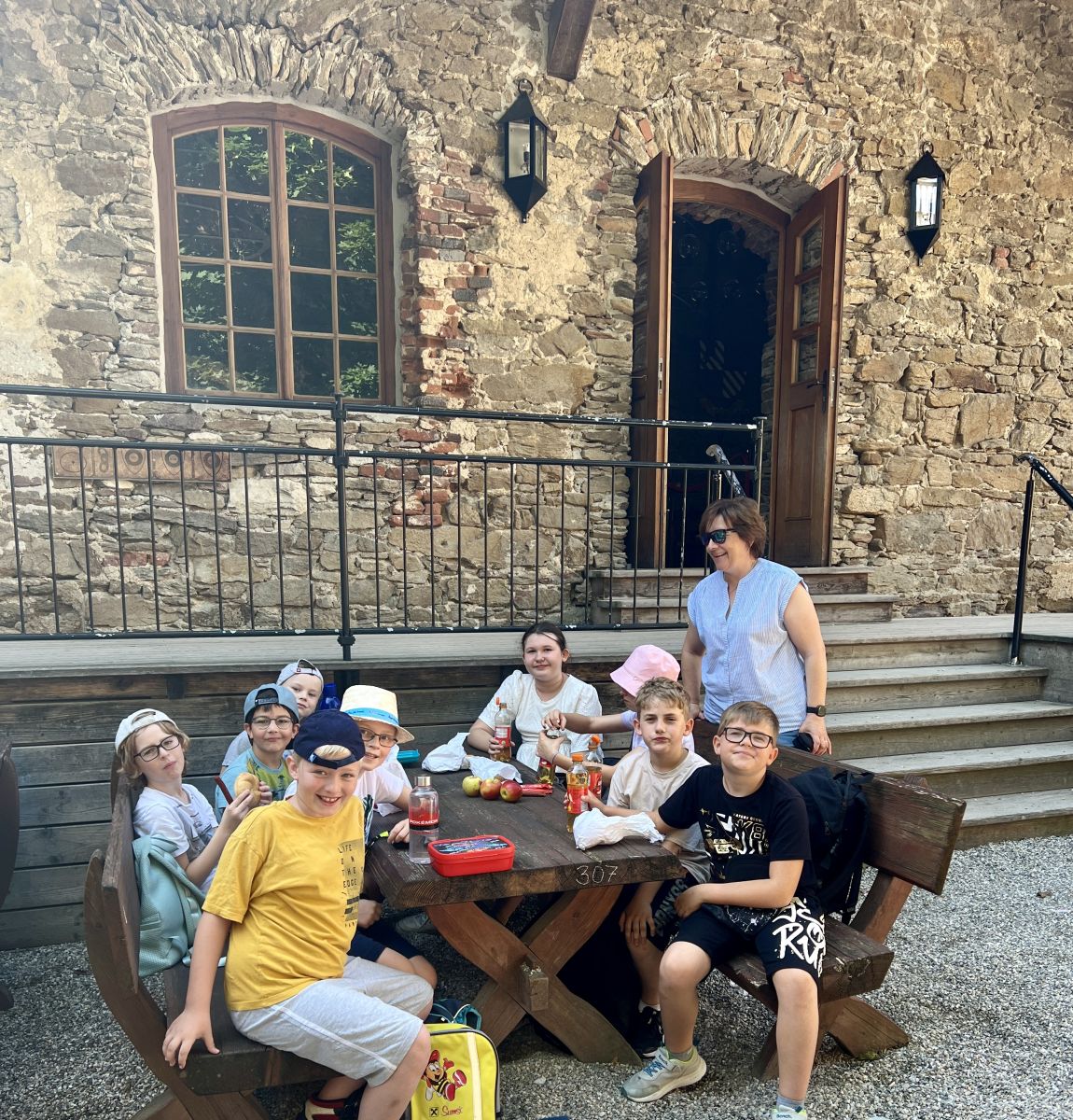 Nach dem abwechslungsreichen Frühstück und dem Einpacken holten uns am Mittwoch der Bus mit den Kindern der 1. und 2. Schulstufe und ihrer Lehrerin Sonja Hackl ab. Wir stiegen zu und fuhren zur Burgruine Aggstein. Dort unterhielt uns Märchenerzählerin Dena Seidl mit ihren wunderbaren Geschichten. Zum Abschluss ging es noch auf Schnitzeljagd und dann nach Hause.