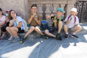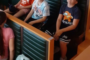 Wegen der Hitze kamen wir erschöpft, aber glücklich und mit vielen neuen Eindrücken in der Jugendherberge an. Nach dem Abendessen gab es zur Freude aller einen „Kinoabend“ in der Herberge.
