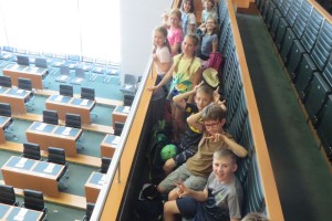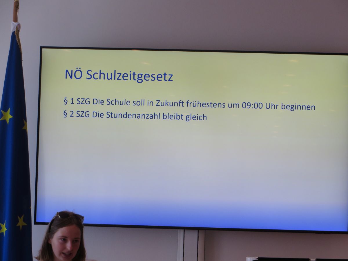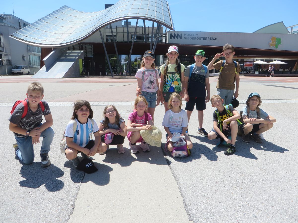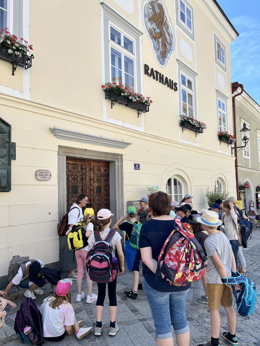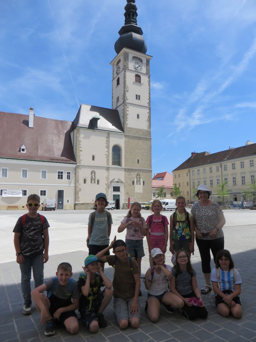 Mit der Zugfahrt von Krems nach St. Pölten starteten wir in den Dienstag. Aufgeteilt in zwei Gruppen stand die Besichtigung des Regierungsviertels mit Landhaus mit einer Kinderlandtagssitzung, Klangturm und Landesmuseum am Vormittagsprogramm. Nach einem Mittagessen in der HTL-Mensa ging es in die Altstadt und zum Dom. Leider war der Zug bei der Heimfahrt überfüllt und wir mussten stehen, doch auch das ist Schule für das Leben.