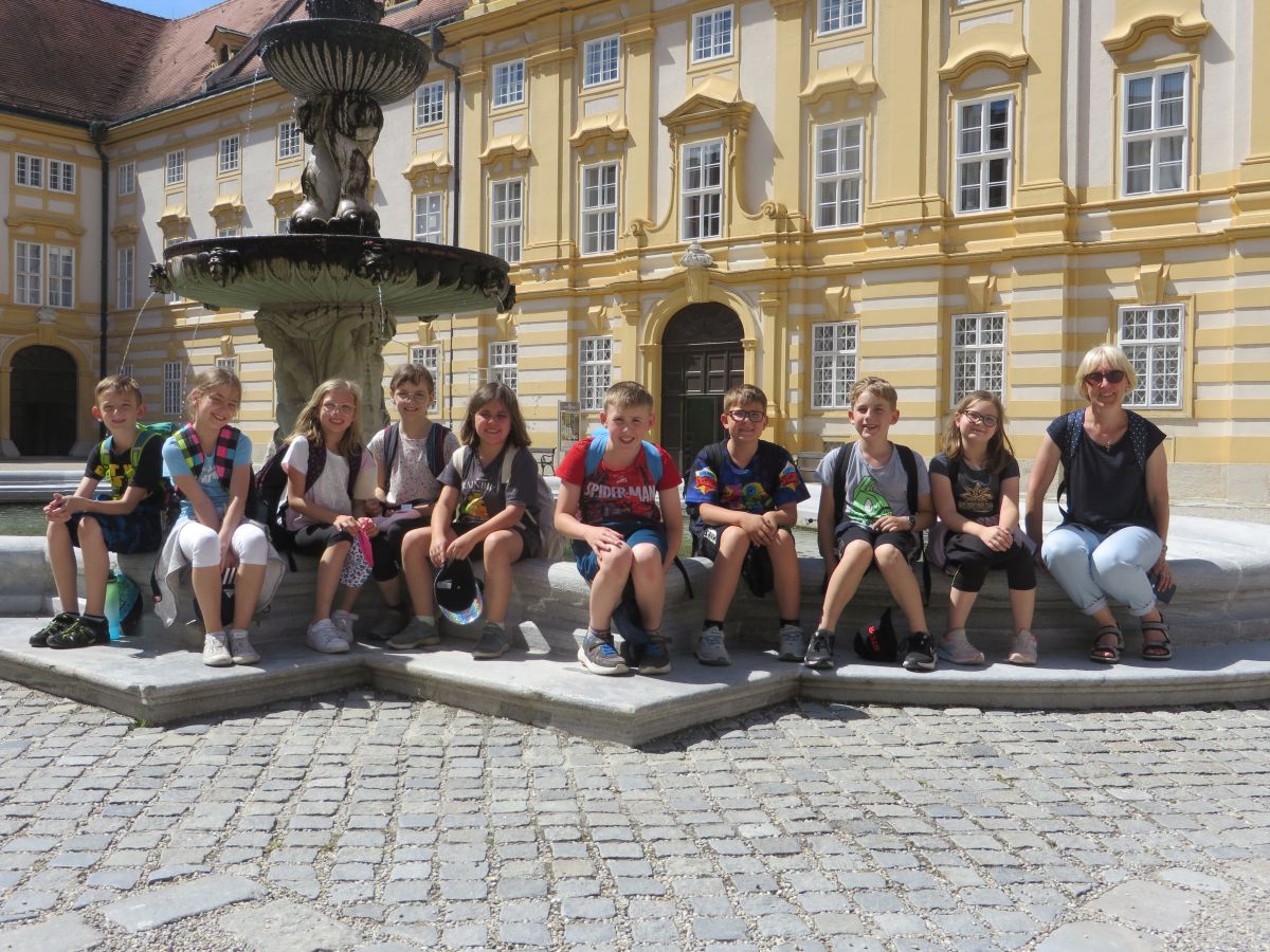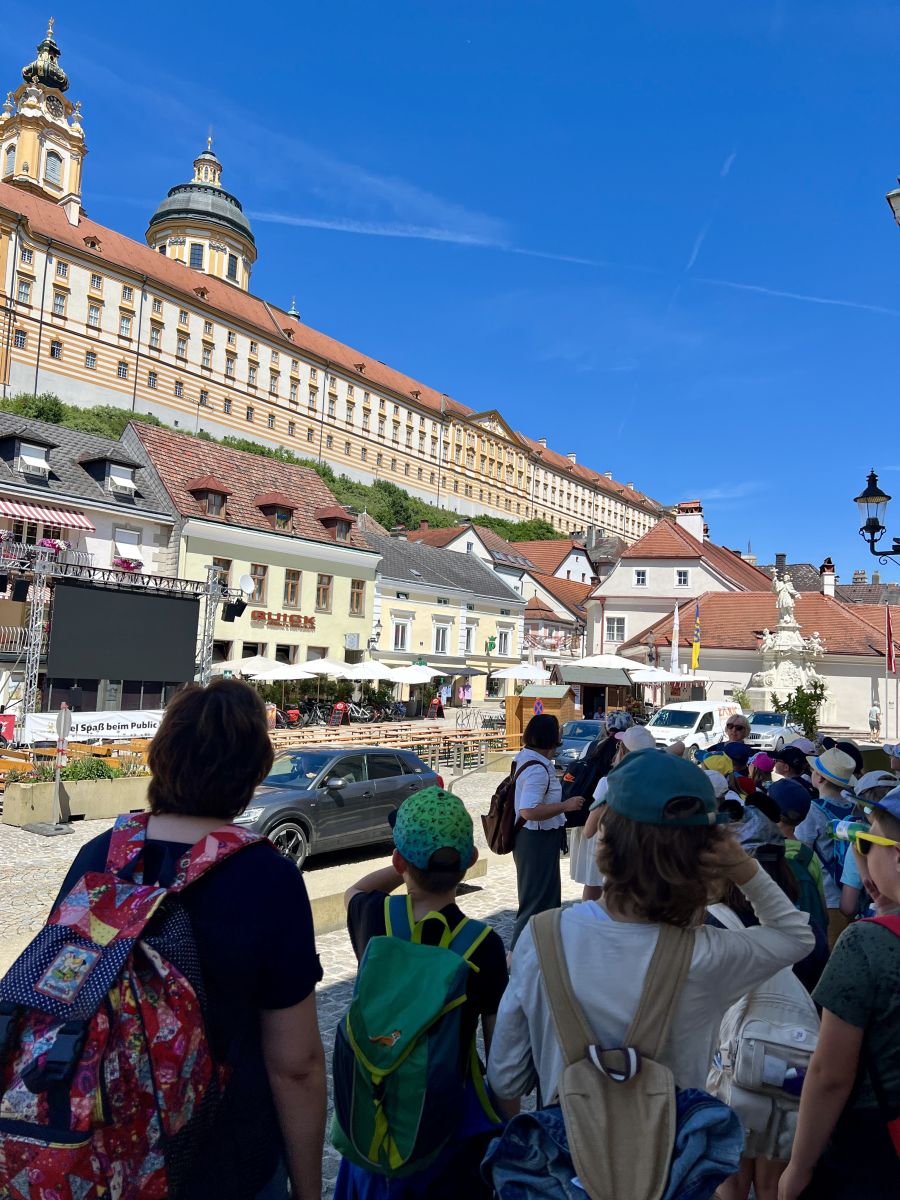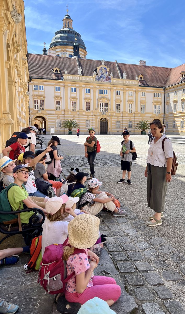 Anschließend ging es weiter mit einer Schifffahrt von Krems nach Melk. Dort wurden wir schon von der Reiseleiterin erwartet. Auf dem Programm stand eine interessante Altstadtführung mit Abschluss im Hof des Stiftes Melk. Schließlich fuhren wir mit dem Bus wieder zur Jugendherberge. Nach dem Abendessen marschierten wir noch zum wunderschönen und nahegelegenen Spielplatz.