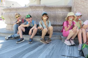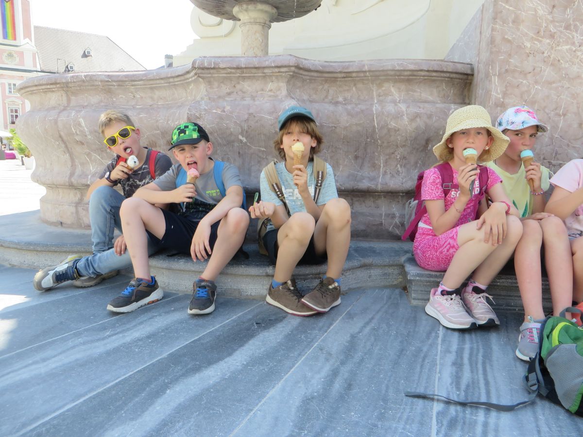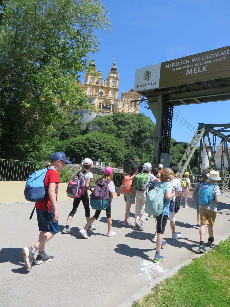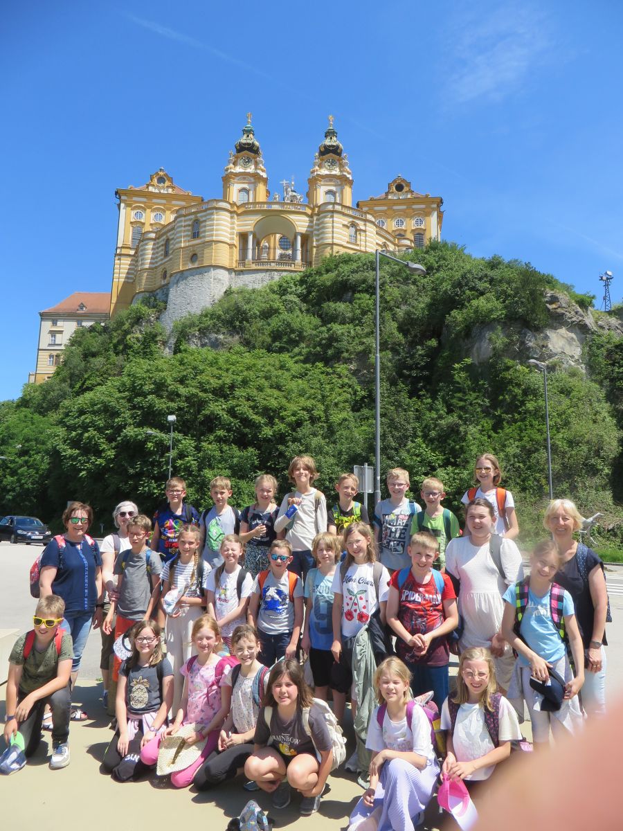 Anschließend ging es weiter mit einer Schifffahrt von Krems nach Melk. Dort wurden wir schon von der Reiseleiterin erwartet. Auf dem Programm stand eine interessante Altstadtführung mit Abschluss im Hof des Stiftes Melk. Schließlich fuhren wir mit dem Bus wieder zur Jugendherberge. Nach dem Abendessen marschierten wir noch zum wunderschönen und nahegelegenen Spielplatz.
