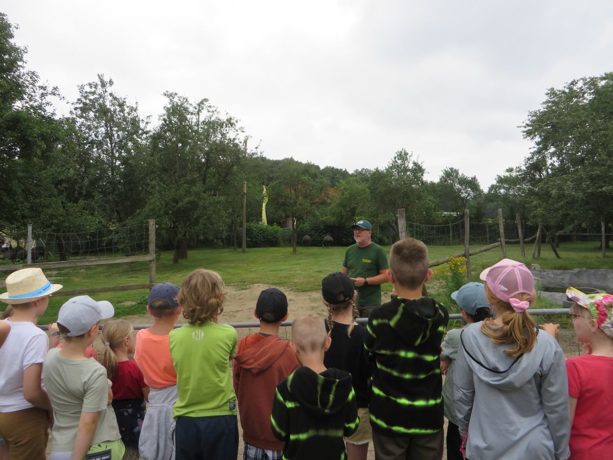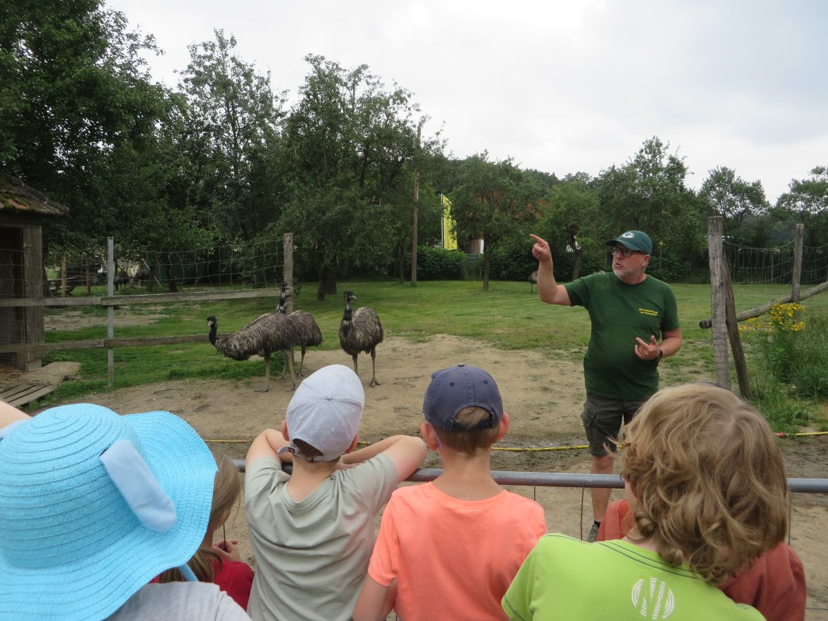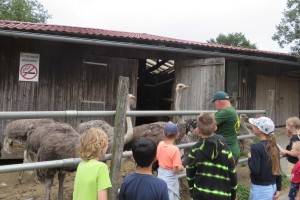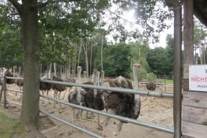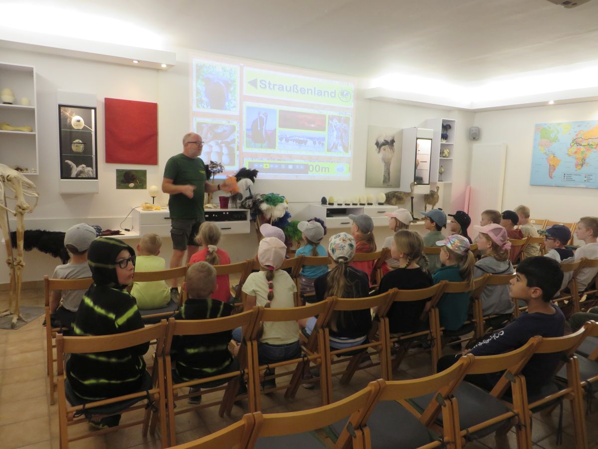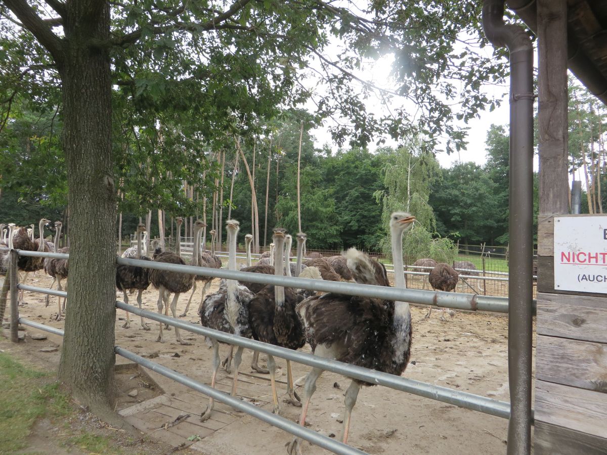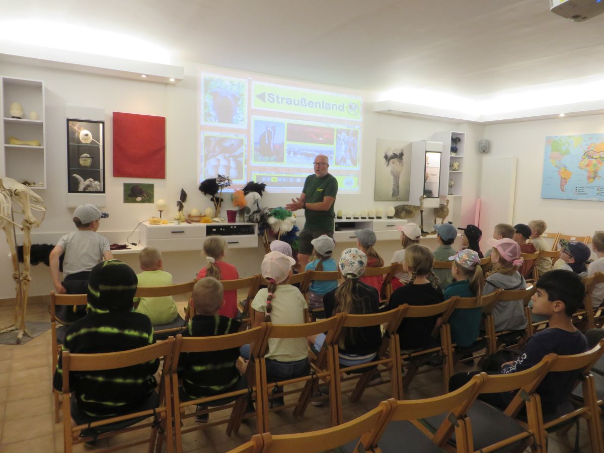 Nach einer anschaulichen Einführung ins Straußenleben sahen wir einen interessanten Impulsfilm über die Strauße in Schönberg. Wir beobachteten im Freigehege Emus, Nandus und natürlich Strauße. Die imposanten und zugleich angriffslustigen Laufvögel beeindruckten uns sehr.