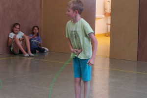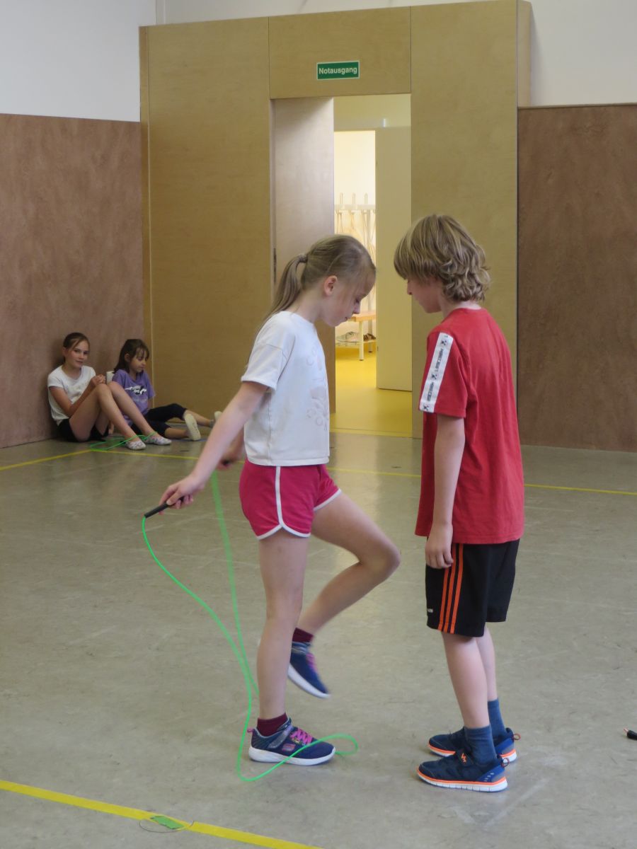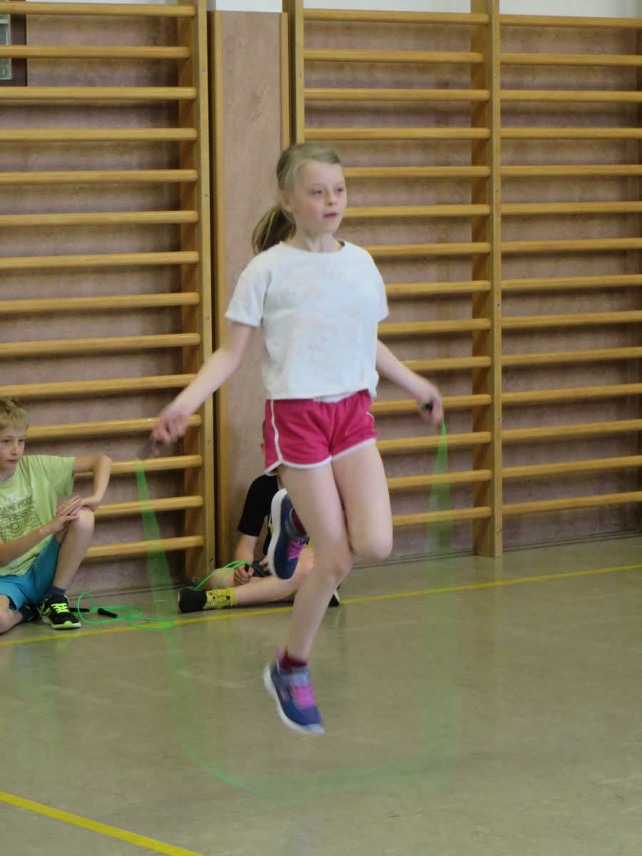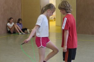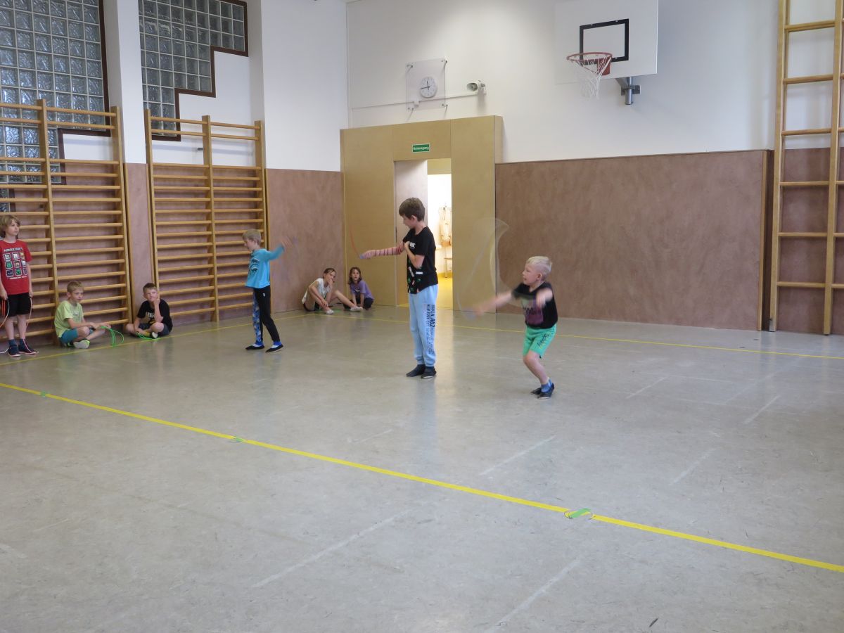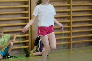 Zu flotter Musik zeigten die Skipper zuerst in Linienaufstellung eine gemeinsame Sprungabfolge. Danach konnten die Kinder bei ihrer Choreografie zeigen, was sie im Laufe des Jahres gelernt haben.