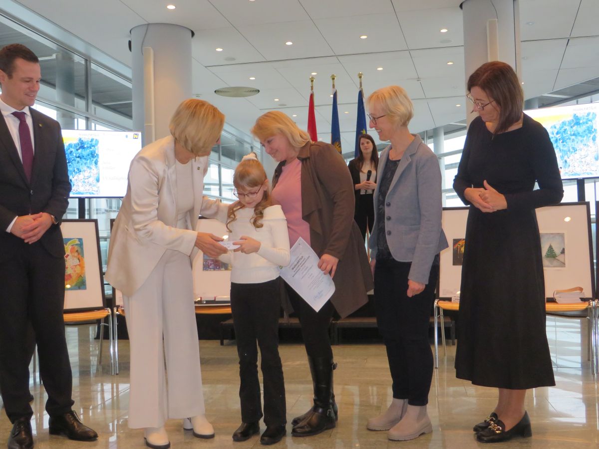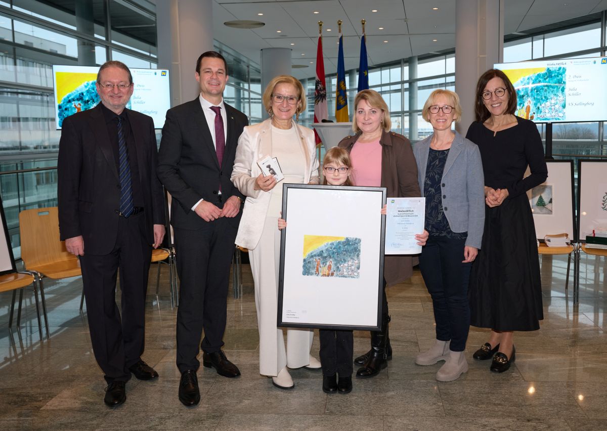 Beim diesjährigen Weihnachtspost Wettbewerb der Bildungsdirektion für NÖ mit der Präsidentin und Landeshauptfrau Johanna Mikl-Leitner dürfen wir uns über eine Preisträgerin aus der VS Sallingberg freuen. Aus knapp 1 800 Einsendungen wurden 20 Werke in den verschiedenen Altersstufen von einer Fachjury ausgewählt, darunter auch die Zeichnung von Julia Schiller aus der 2. Schulstufe. Sie erreichte den 2. Platz bei den Volksschulkindern. Die Preisverleihung fand im Landhaus in St.Pölten statt, begleitet wurde Julia von ihrer Mutter Irina Schiller und der Lehrerin für Kunst und Gestaltung Rosa Pertzl.