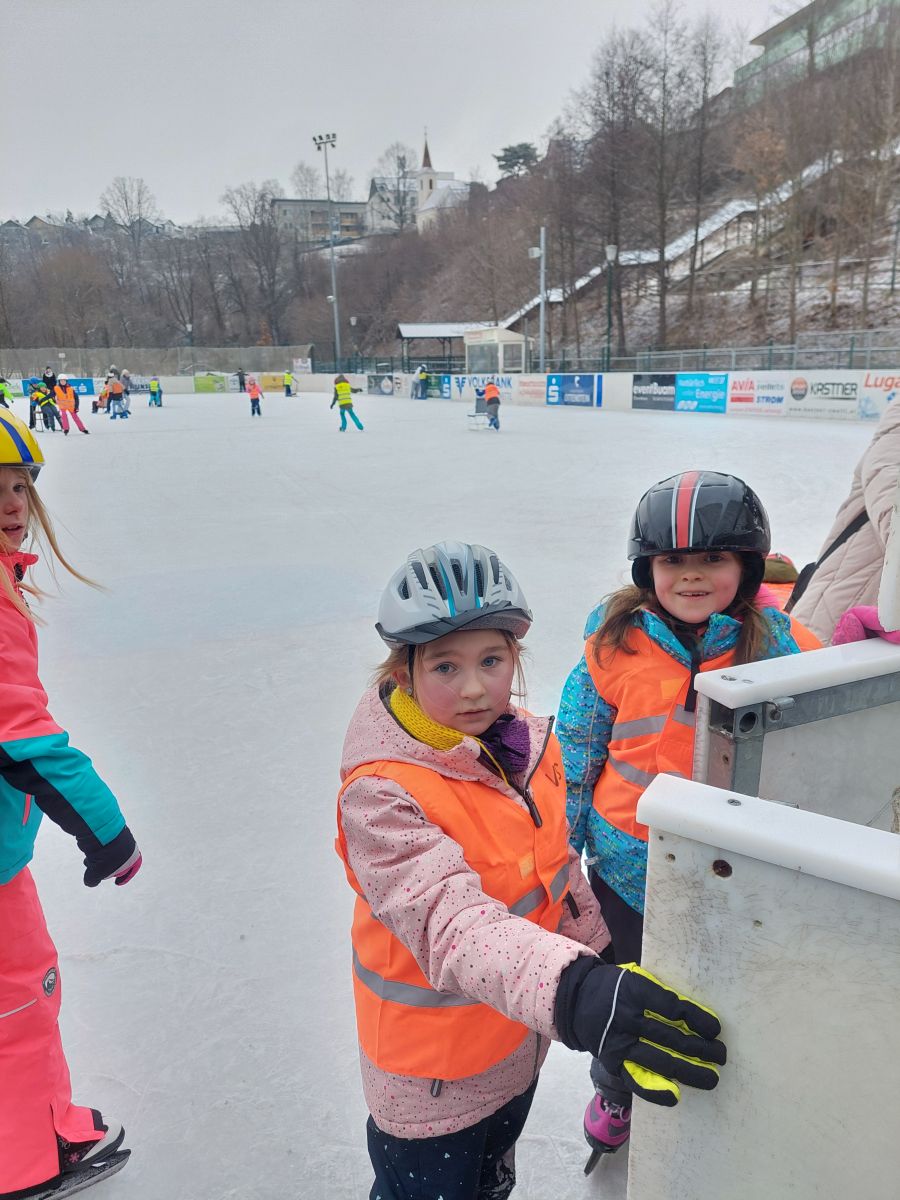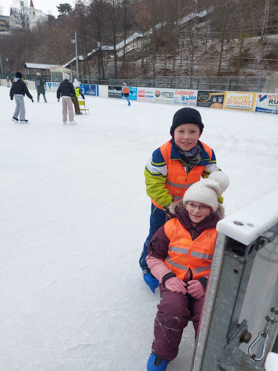 Um 9 Uhr in der Früh fuhren alle Kinder der Volksschule mit dem Bus nach Zwettl zum Eislaufplatz.