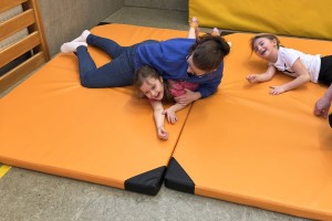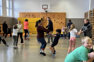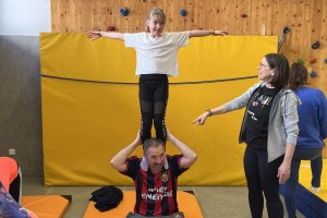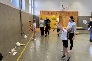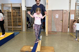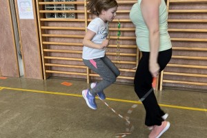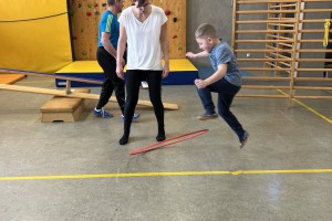 Die Referentin DI Tina Kretschmer hatte zahlreiche Stationen im Turnsaal und in der Aula aufgebaut. Nach einem lustigen Aufwärmspiel erklärte Frau Kretschmer die positive Auswirkung vieler Tätigkeiten, Übungen und Spiele auf die körperliche und geistige Entwicklung der Kinder.