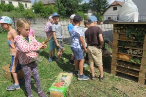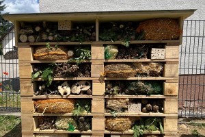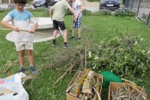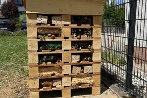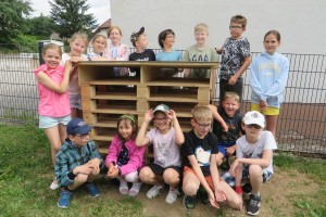 Die Eltern der 4. Schulstufe schenkten der Volksschule zum Schulschluss ein Insektenhotel, welches von den Kindern befüllt wurde.