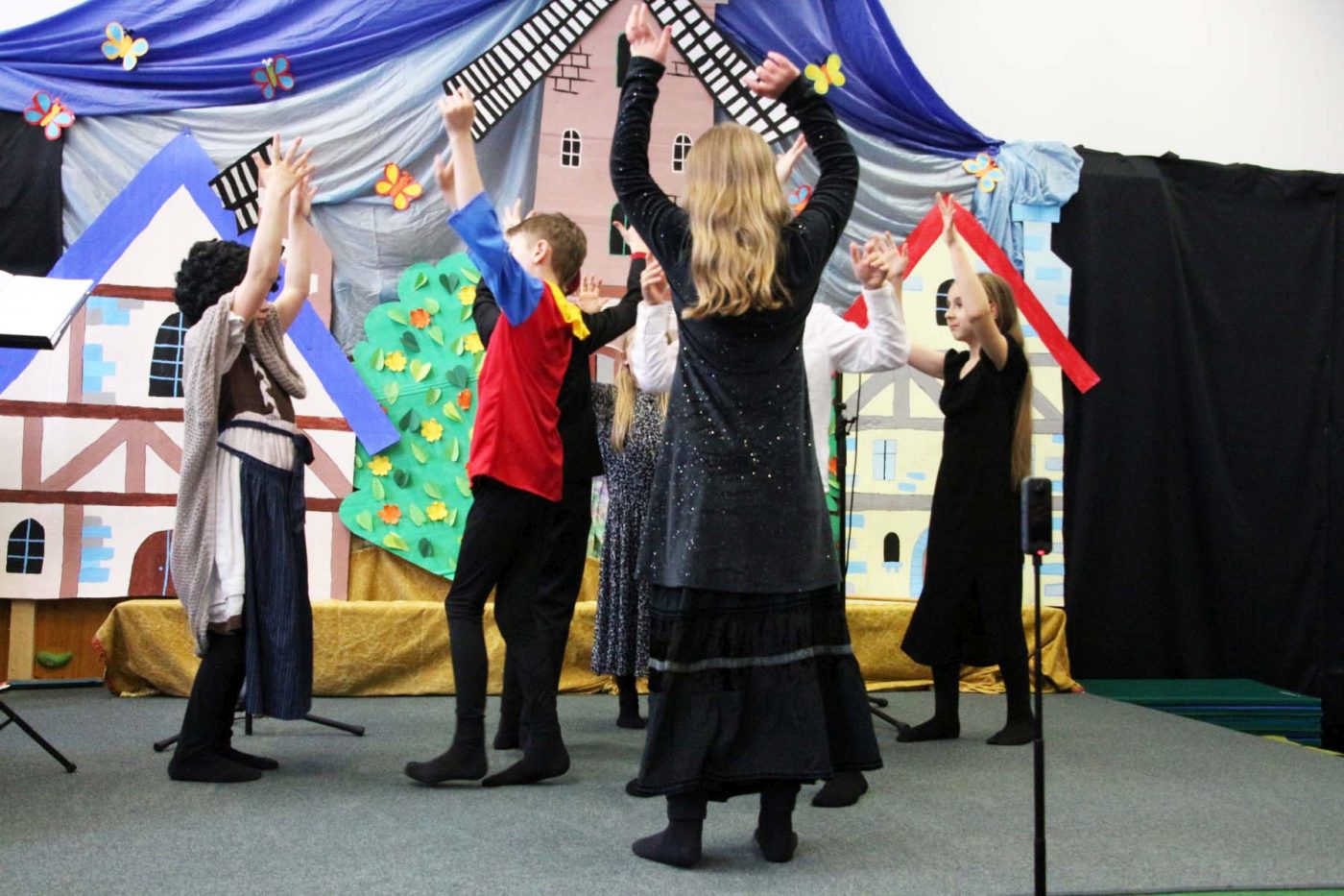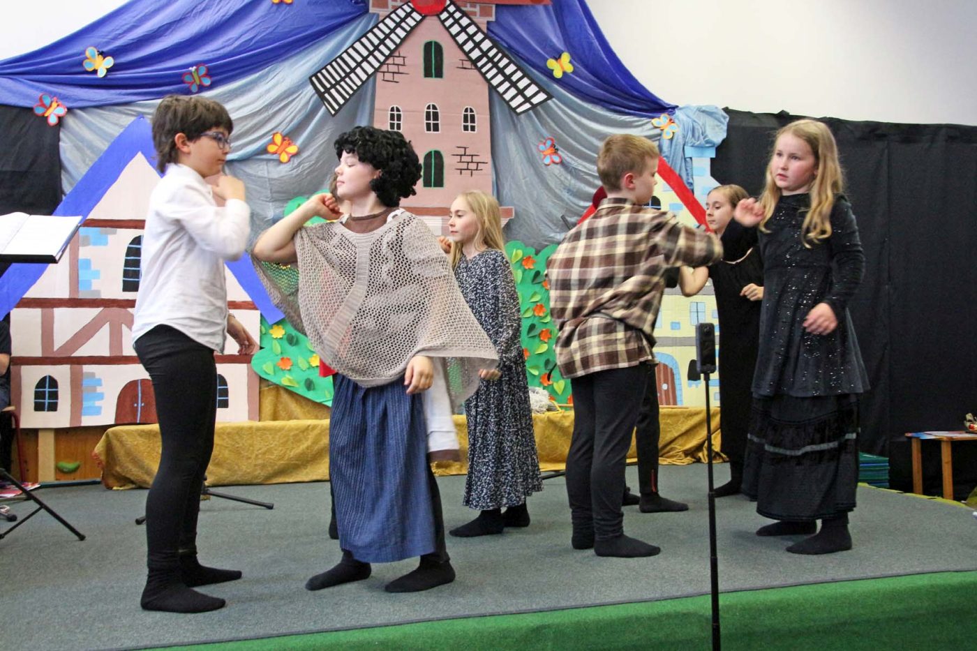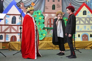 Der amüsante Inhalt drehte sich natürlich um einige Schildbürger-Streiche – darunter der Bau eines dreieckigen Rathauses ohne Fenster, der sehr kreativ mit dem Aufbau einer Mauer aus Schachteln umgesetzt wurde, die Bürgermeisterwahl mittels Reimwettbewerb und der Kauf eines Maushundes gegen die Mäuseplage. Die witzigen Texte brachten das Publikum immer wieder zum Lachen. Viele der in originellen Kostümen gekleideten jungen Darsteller entpuppten sich dabei als talentierte Schauspieler. Das gilt auch für die Gesangssolistinnen – vor allem Victoria Glasner begeisterte mit ihrem Luftschlösserlied die Zuhörer.